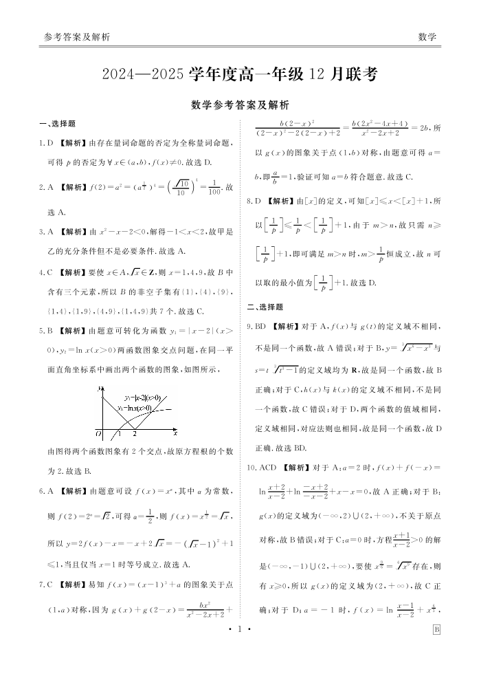 河北区域高中2024-2025学年度高一年级12 月联考数学B答案