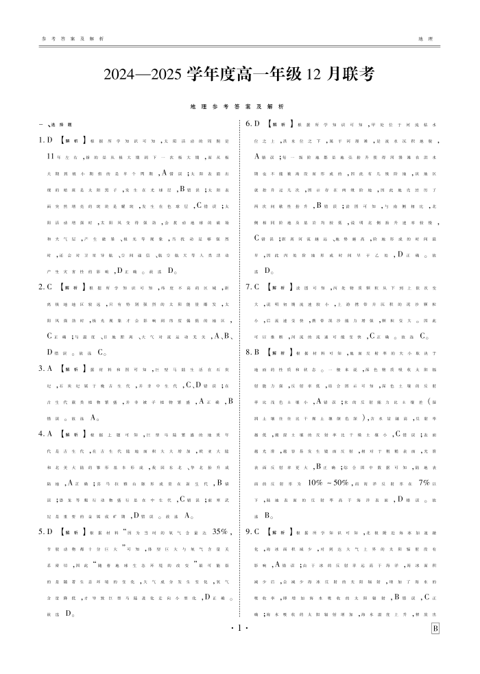 河北区域高中2024-2025学年度高一年级12 月联考地理B答案
