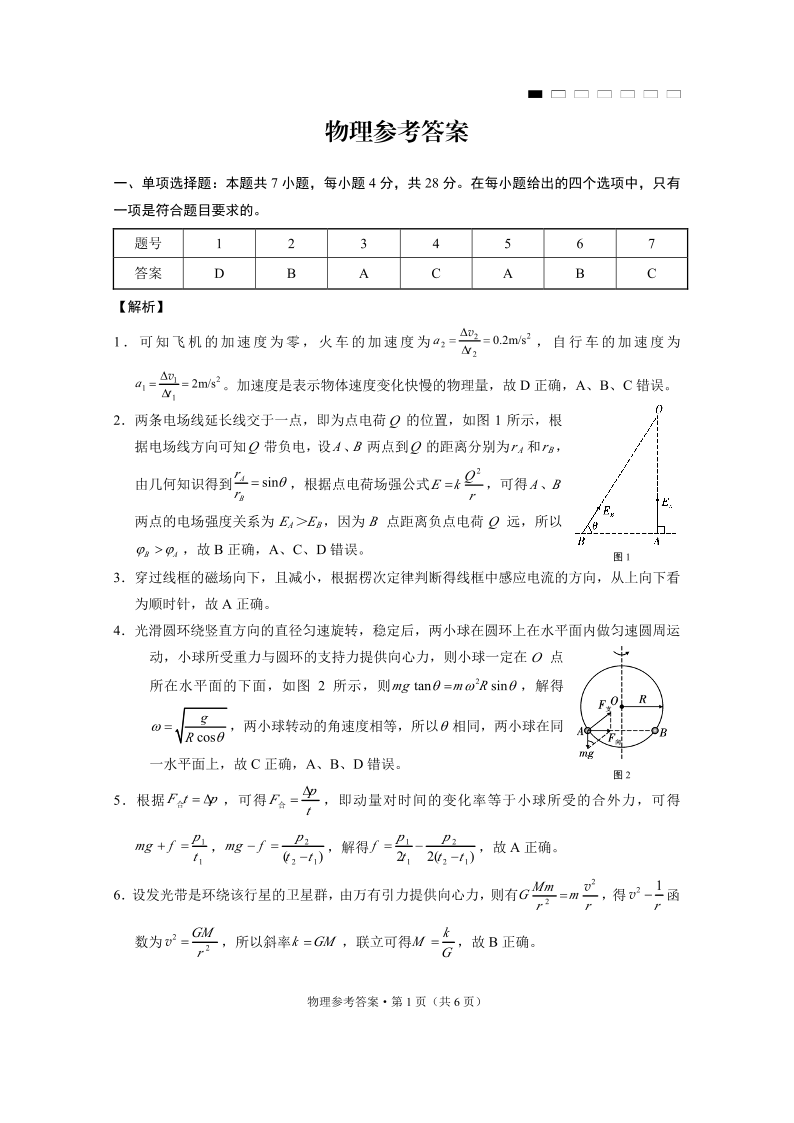 重庆市第八中学2025届高考高三适应性月考卷 (四)物理答案