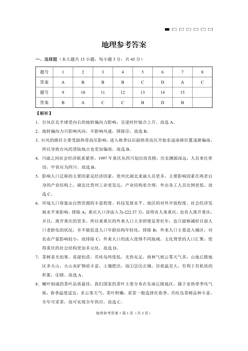 重庆市第八中学2025届高考高三适应性月考卷 (四)地理答案