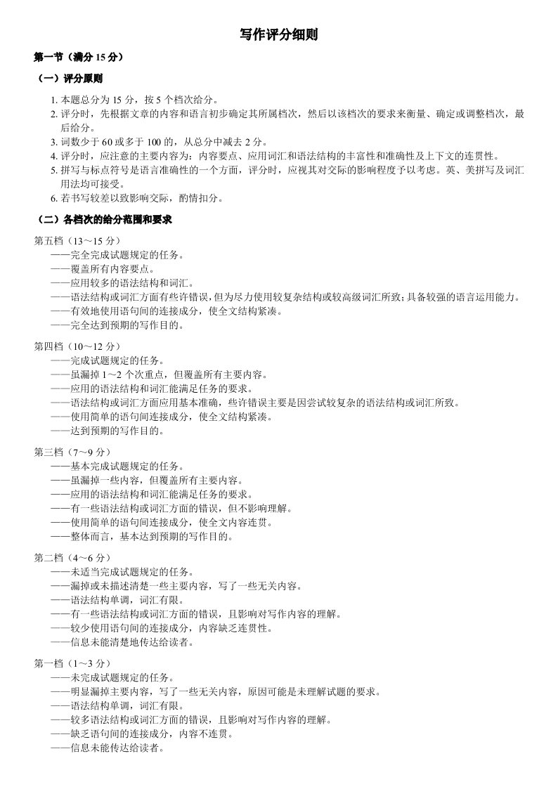 河南省TOP二十名校2025届高三上学期调研考试(三)英语写作评分细则