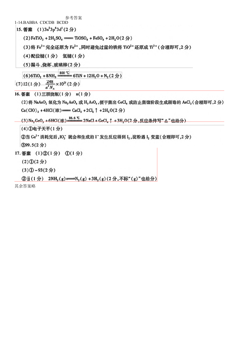 安徽省区域高中2025届上学期高三年级12月联考化学答案