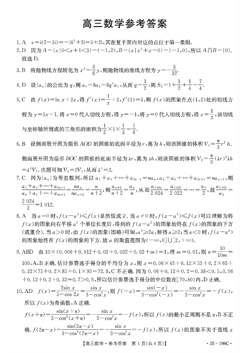 广东、福建两省跨区域高中2025届高三年级12月联考数学答案