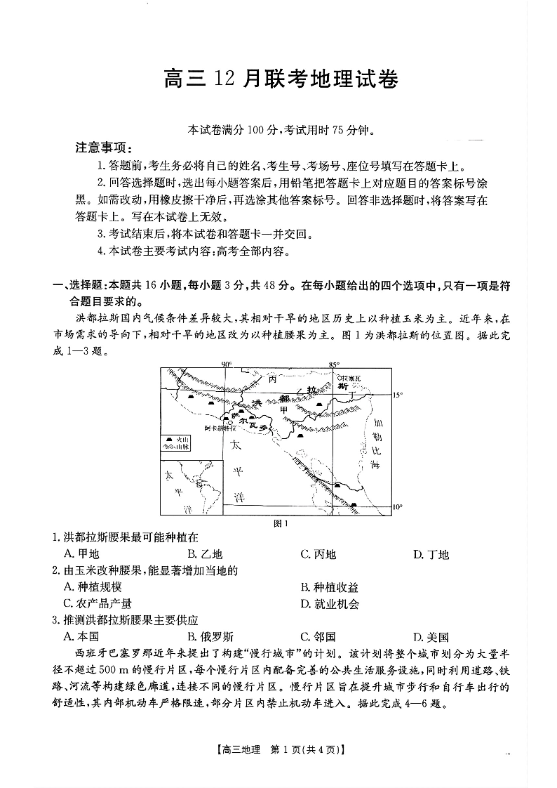广东、福建两省跨区域高中2025届高三年级12月联考地理+答案