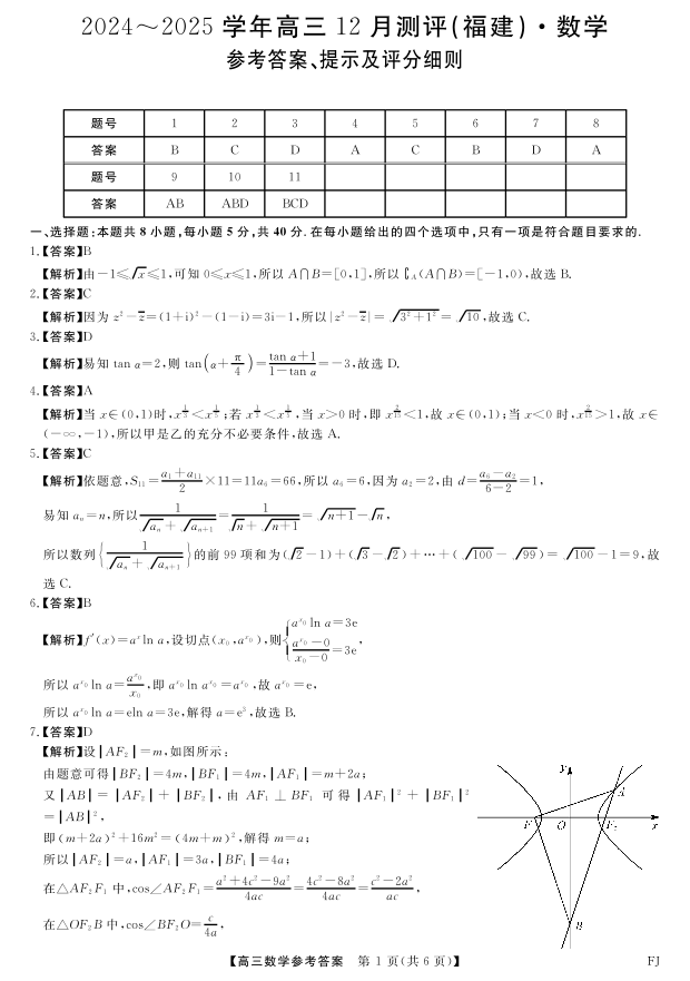 福建省金科大联考2025届上学期高三年级12月测评数学答案