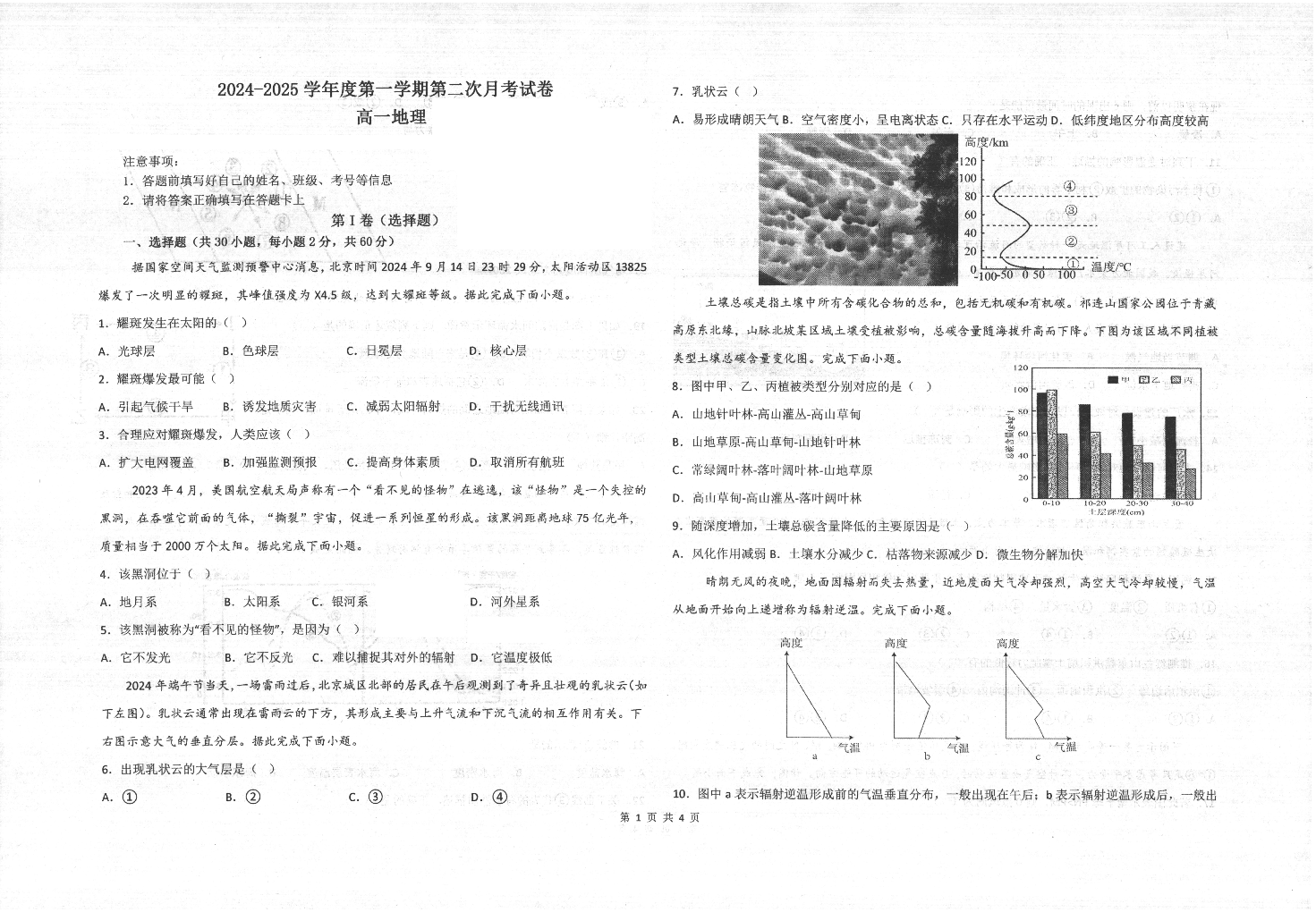 陕西省汉中市二中类校2024-2025学年高一上学期12月月考地理+答案解析