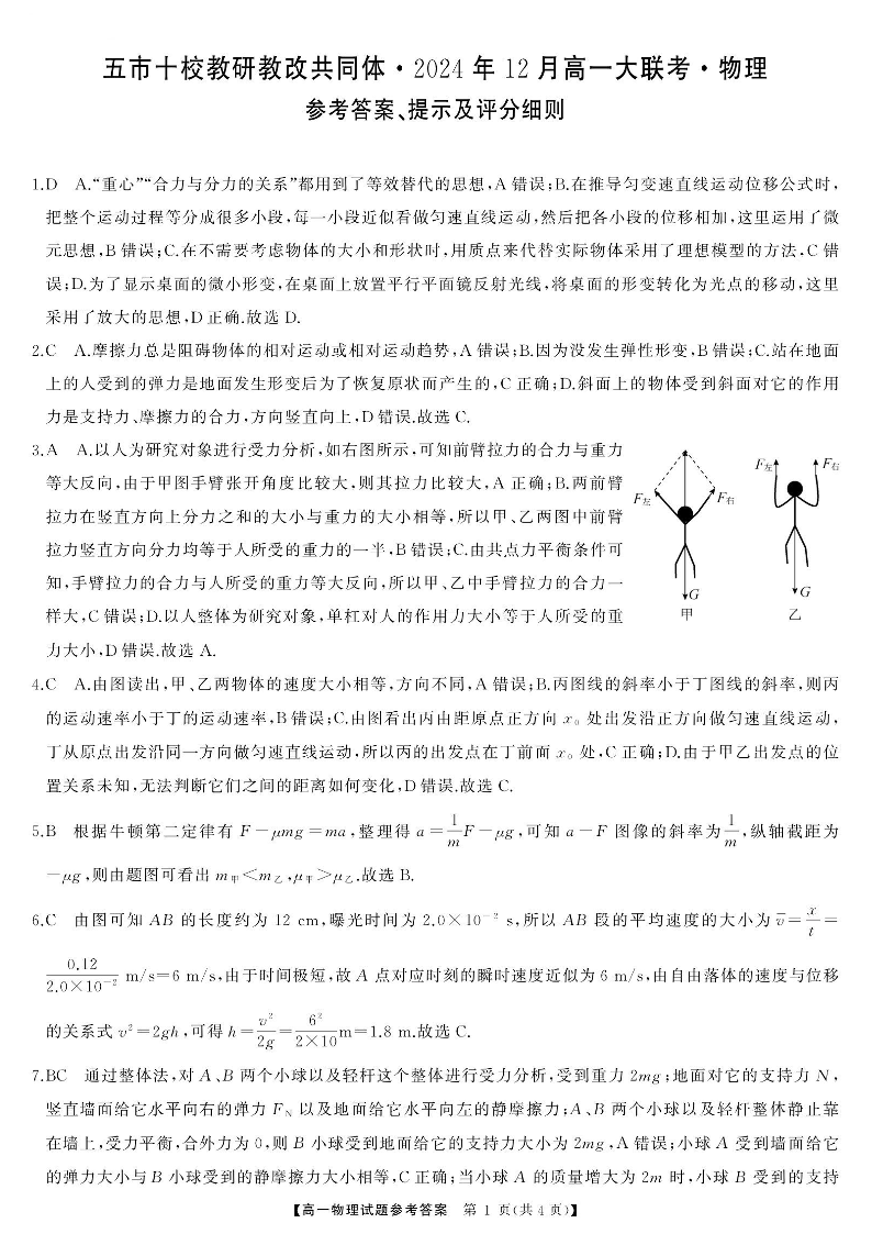 湖南省五市十校教研教改共同体2024-2025学年高一上学期12月月考物理答案.pdf