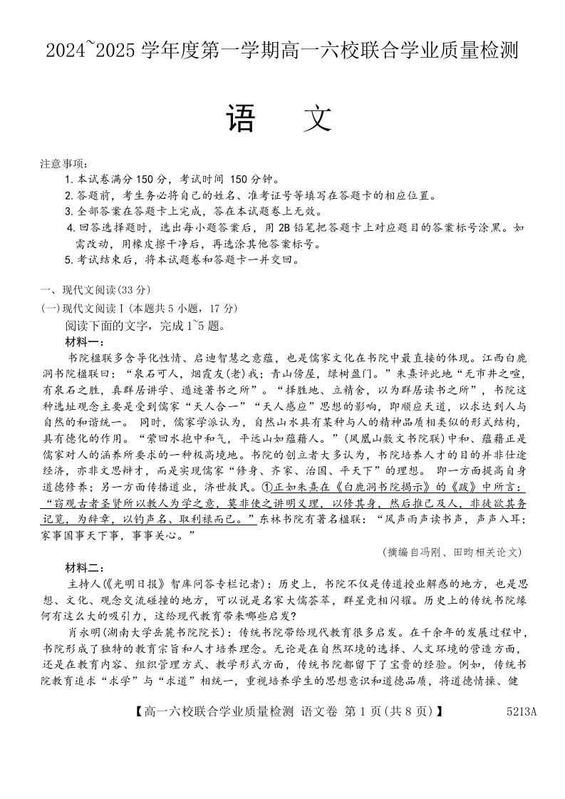 广东省六校2024-2025学年高一上学期12月联合考试语文