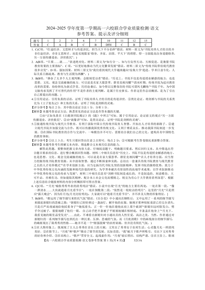 广东省六校2024-2025学年高一上学期12月联合考试语文答案