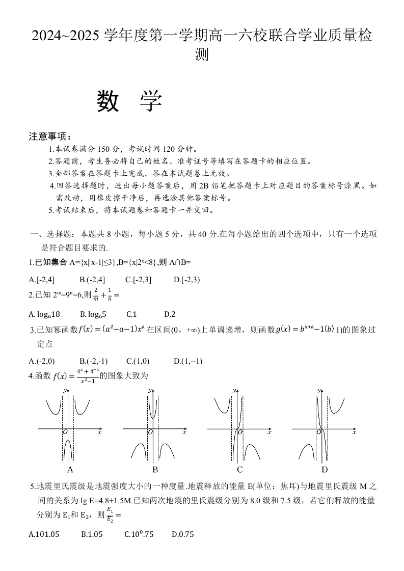 广东省六校2024-2025学年高一上学期12月联合考试数学