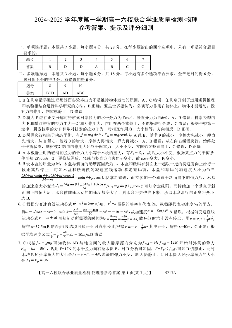 广东省六校2024-2025学年高一上学期12月联合考试物理答案