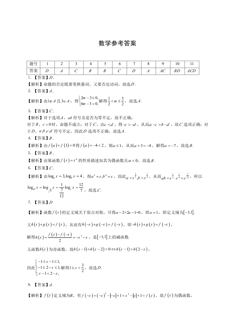 安徽省师大附中2024-2025学年高一上学期12月月考数学答案