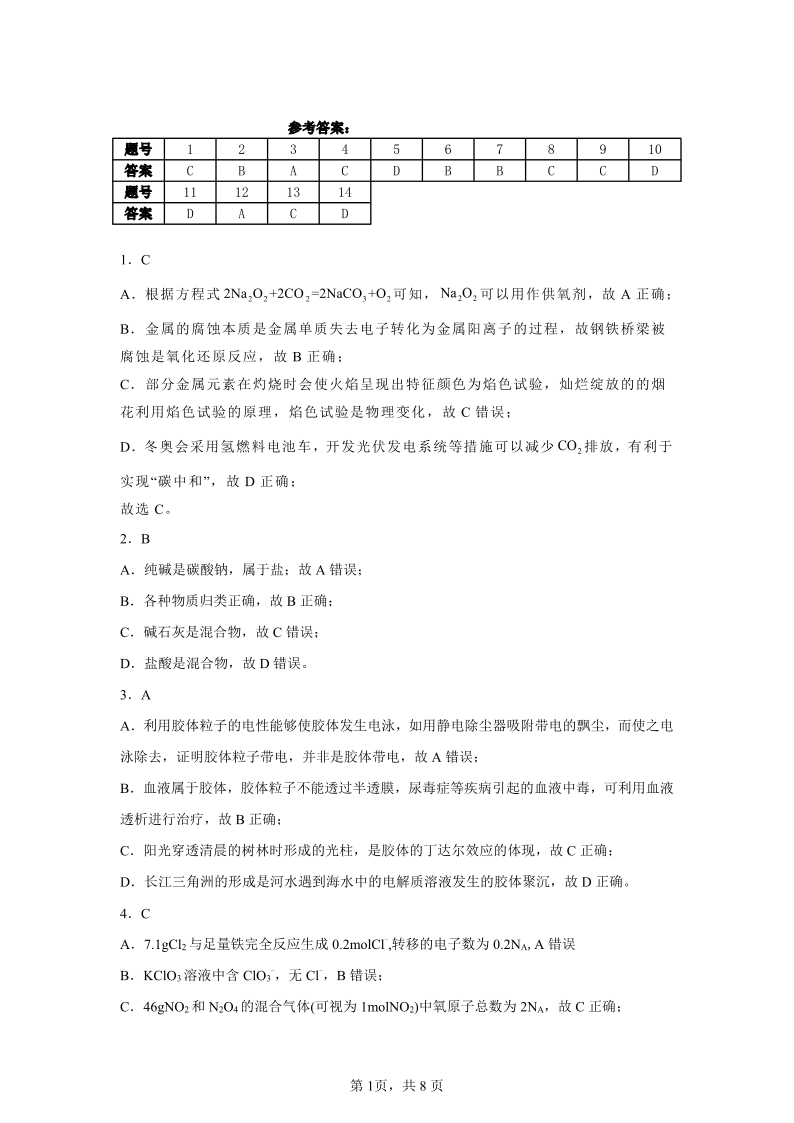 安徽省师大附中2024-2025学年高一上学期12月月考化学答案