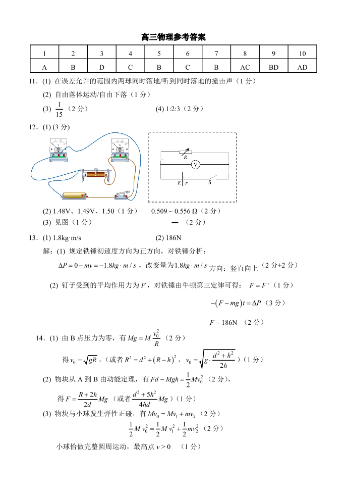 重庆市西南大学附属中学2025届高三一诊模拟考试物理答案