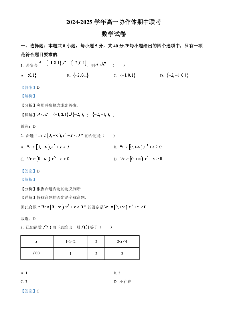 四川省眉山市仁寿县协作体2024-2025学年高一上学期11月期中联考数学(解析版)