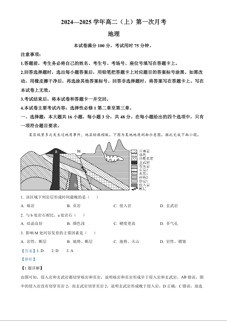 河北省邢台市2024-2025学年高二上学期第一次月考地理(解析版)