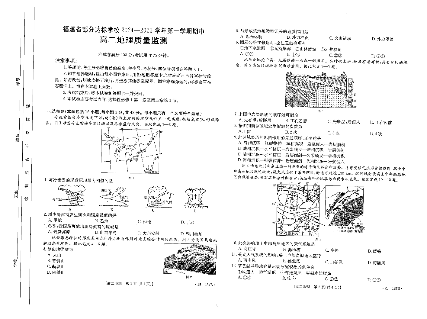 福建省部分达标学校2024-2025学年第一学期期中考试地理