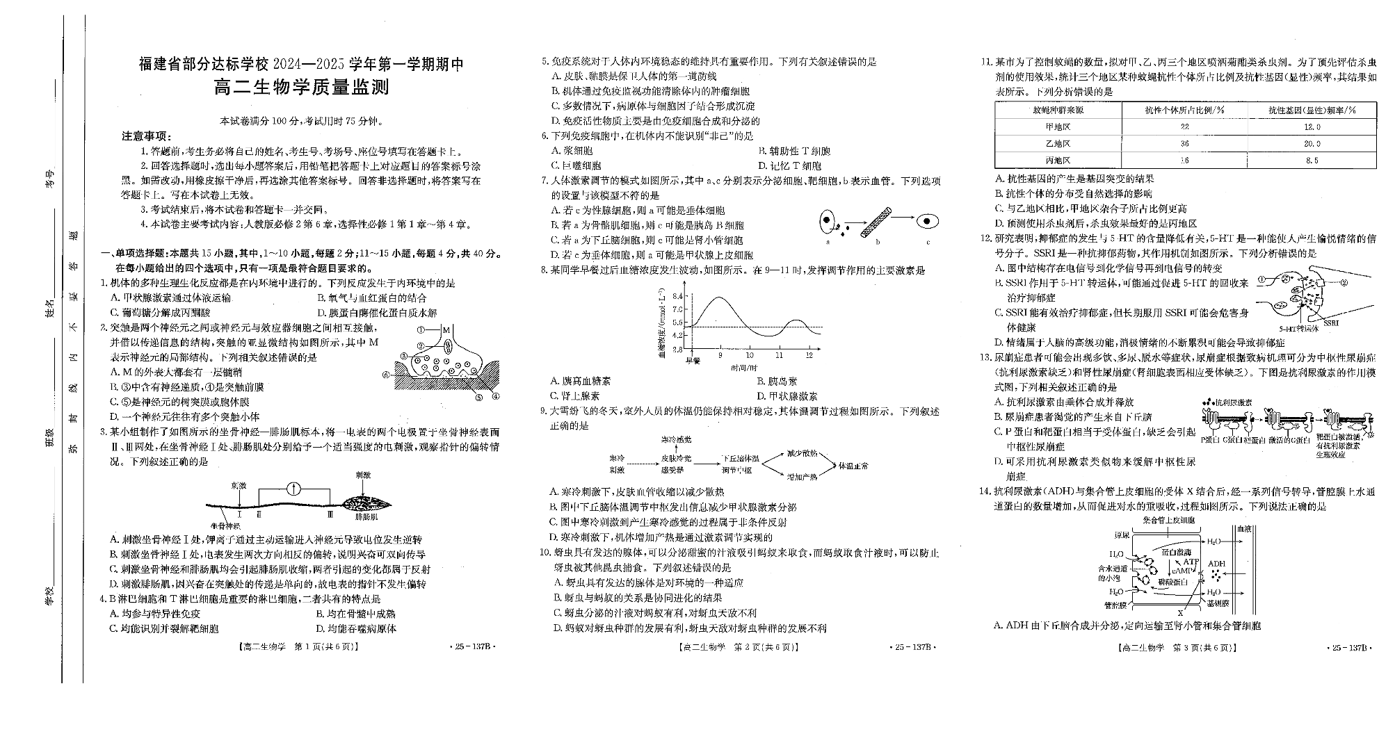福建省部分达标学校2024-2025学年第一学期期中考试生物1