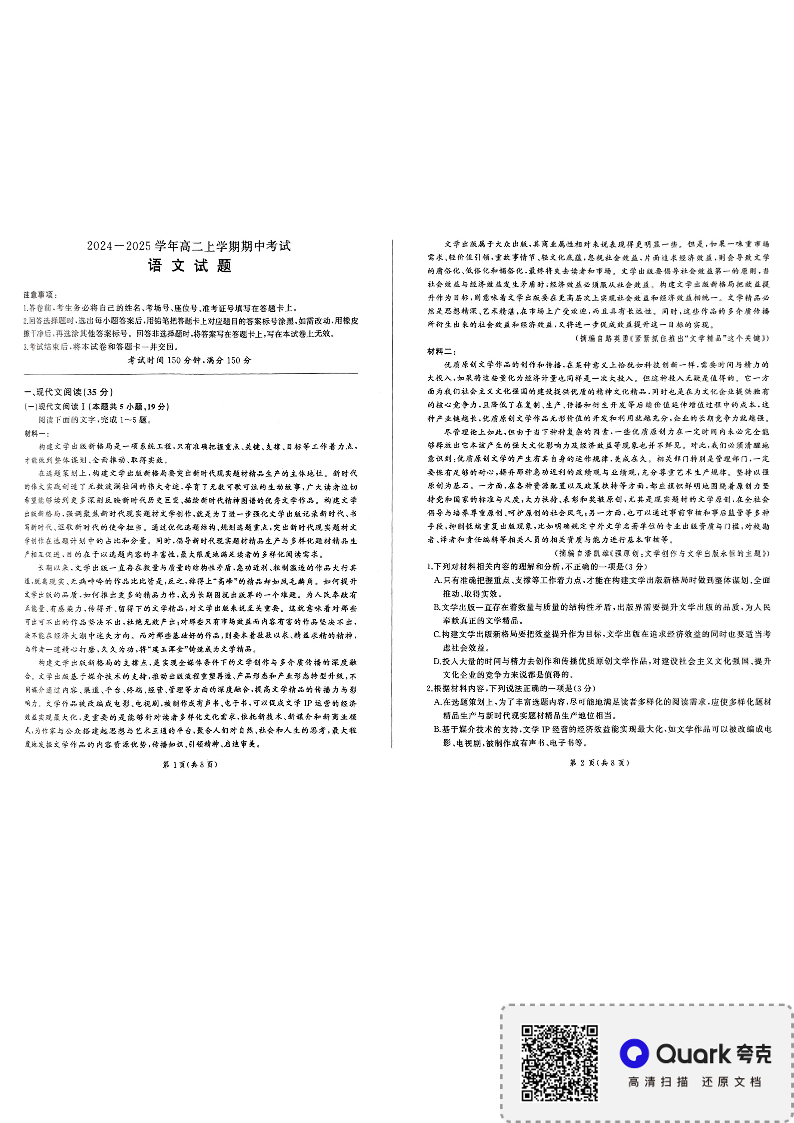 甘肃省酒泉市金塔县等四地2024-2025学年高二上学期1期中考试语文