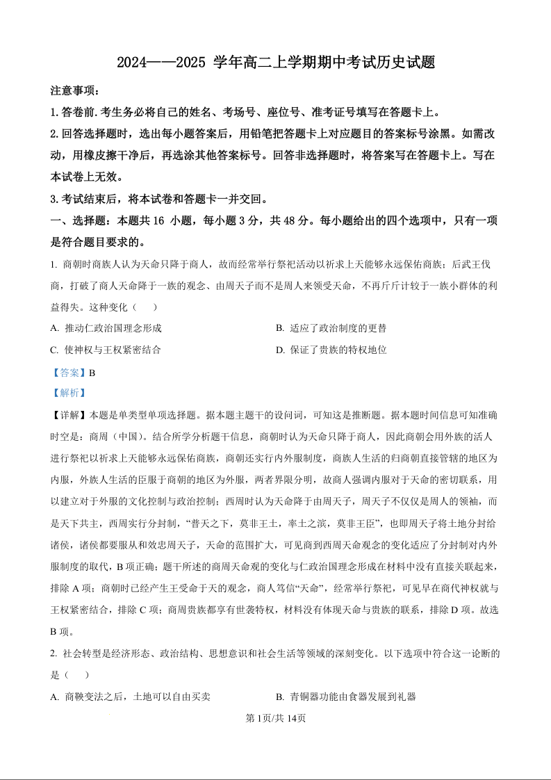 甘肃省酒泉市金塔县等四地2024-2025学年高二上学期1期中考试历史试题(解析版)