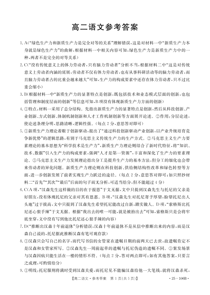 广东省2024-2025学年部分学校高二上学期期中联合质量检测语文答案