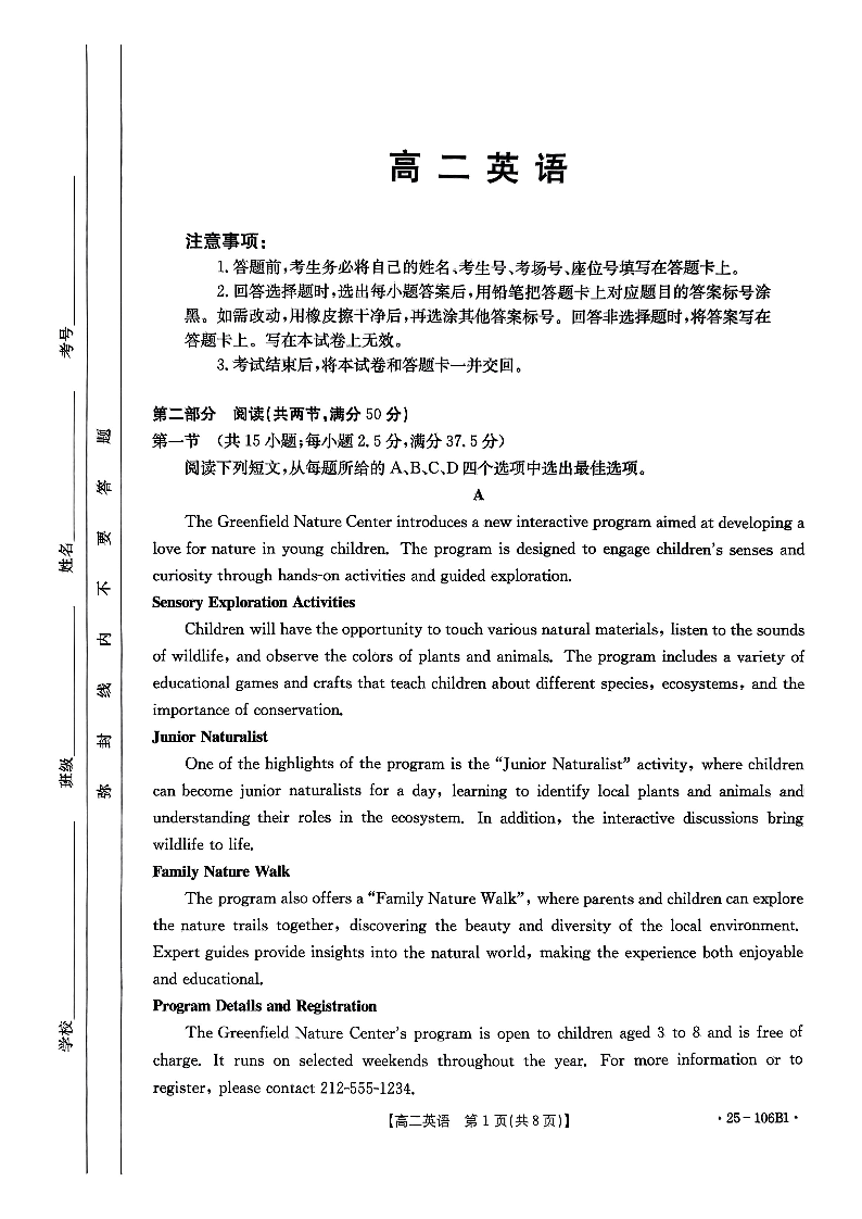 广东省2024-2025学年部分学校高二上学期期中联合质量检测英语