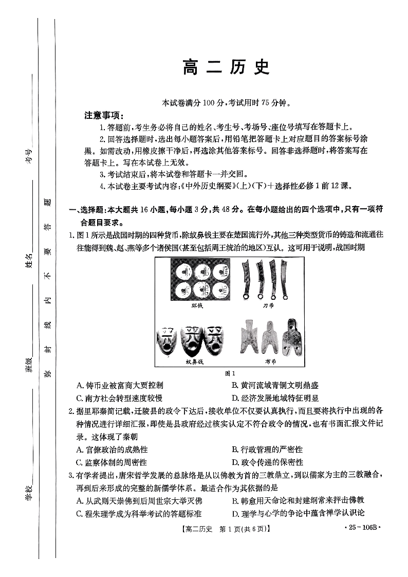 广东省2024-2025学年部分学校高二上学期期中联合质量检测历史