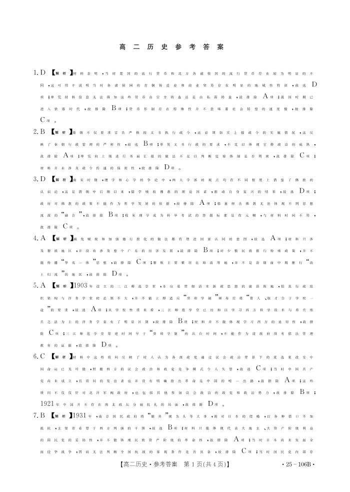 广东省2024-2025学年部分学校高二上学期期中联合质量检测历史答案