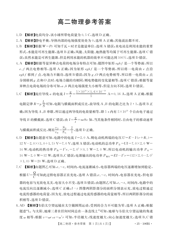 广东省2024-2025学年部分学校高二上学期期中联合质量检测物理B1答案
