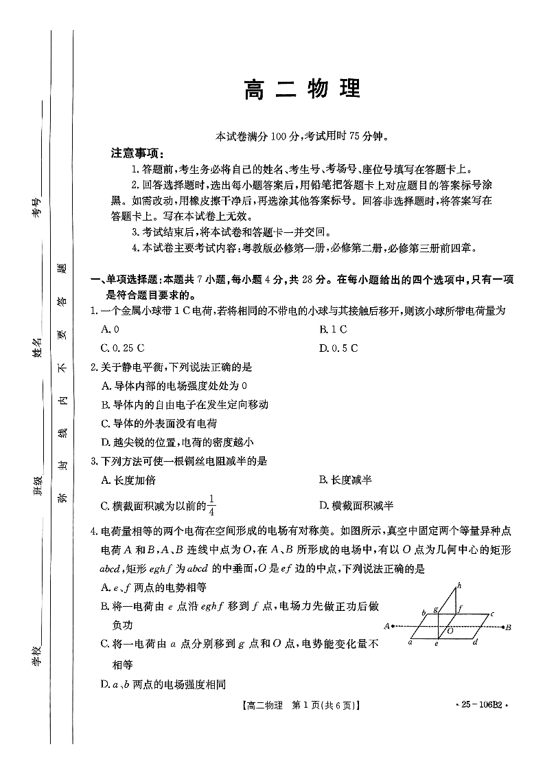 广东省2024-2025学年部分学校高二上学期期中联合质量检测物理B2