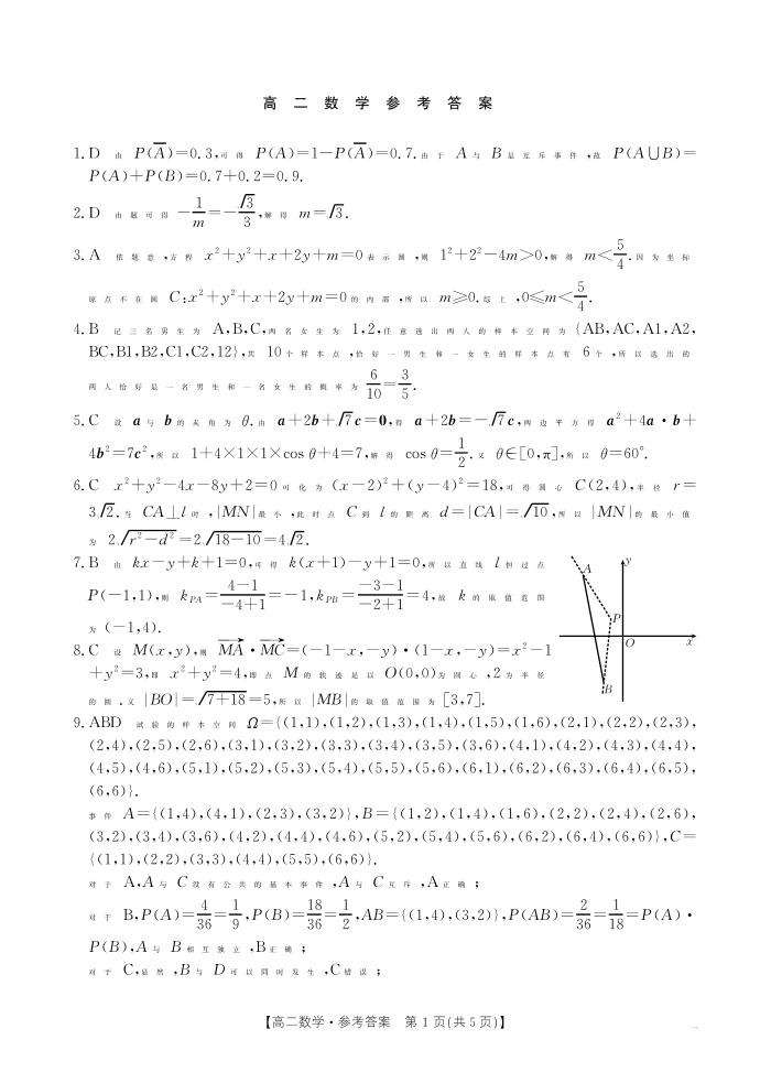 广东省部分学校2024-2025学年高二上学期期中联合质量检测数学答案