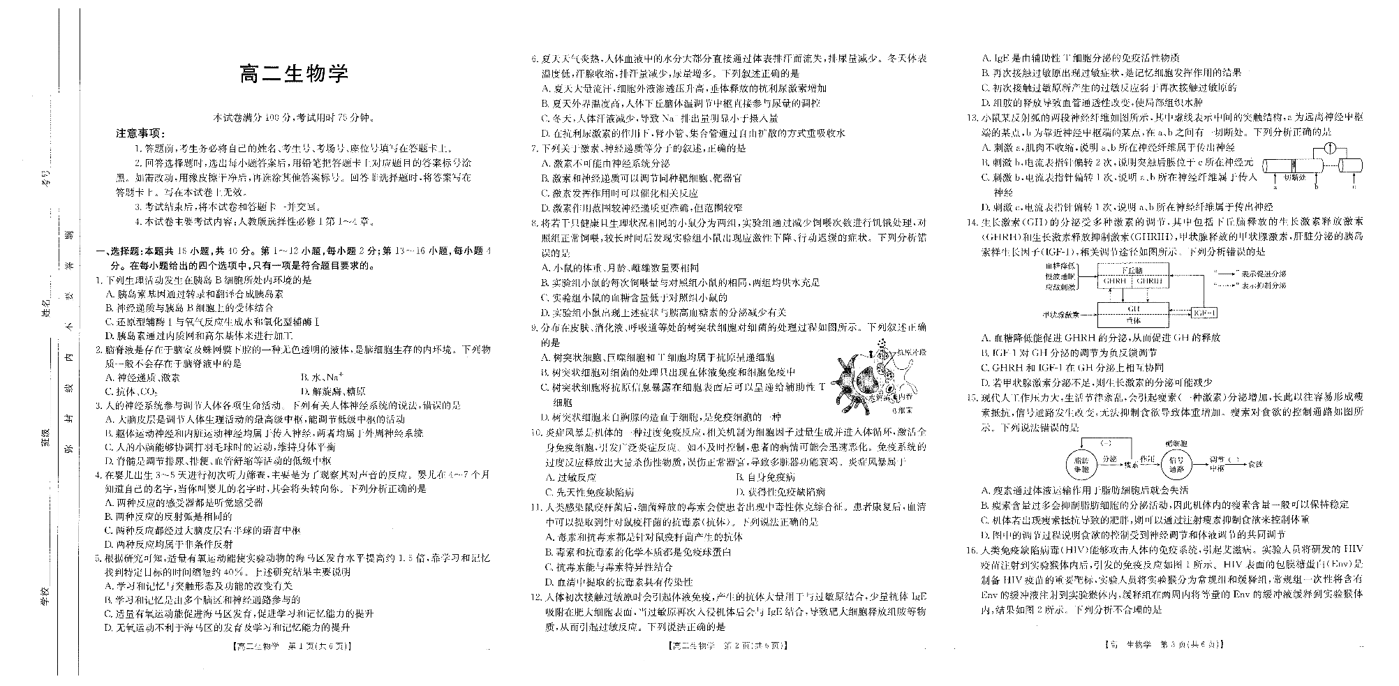 广东省部分学校2024-2025学年高二上学期期中联合质量检测生物