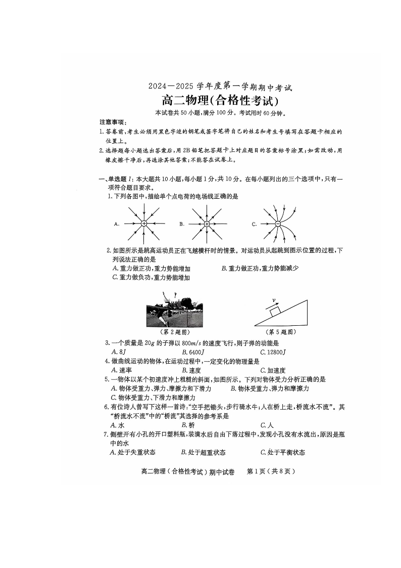 广东省茂名市电白区2024-2025学年度第一学期期中考试物理+答案