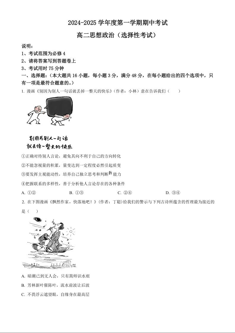 广东省茂名市电白区2024-2025学年度第一学期期中考试政治+答案