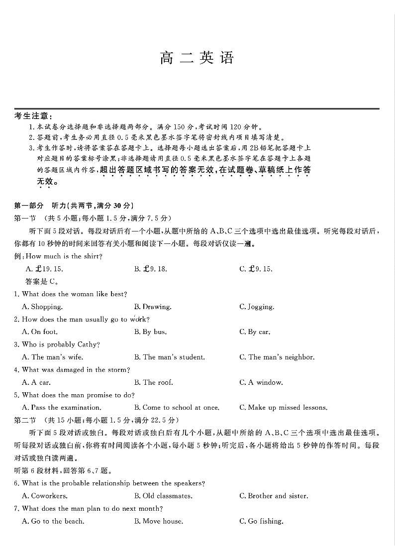贵州省部分学校2024-2025学年高二上学期11月联考英语