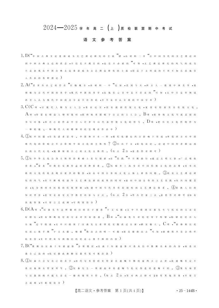 河北省邢台市2024-2025学年高二(上)质检联盟期中考试语文答案