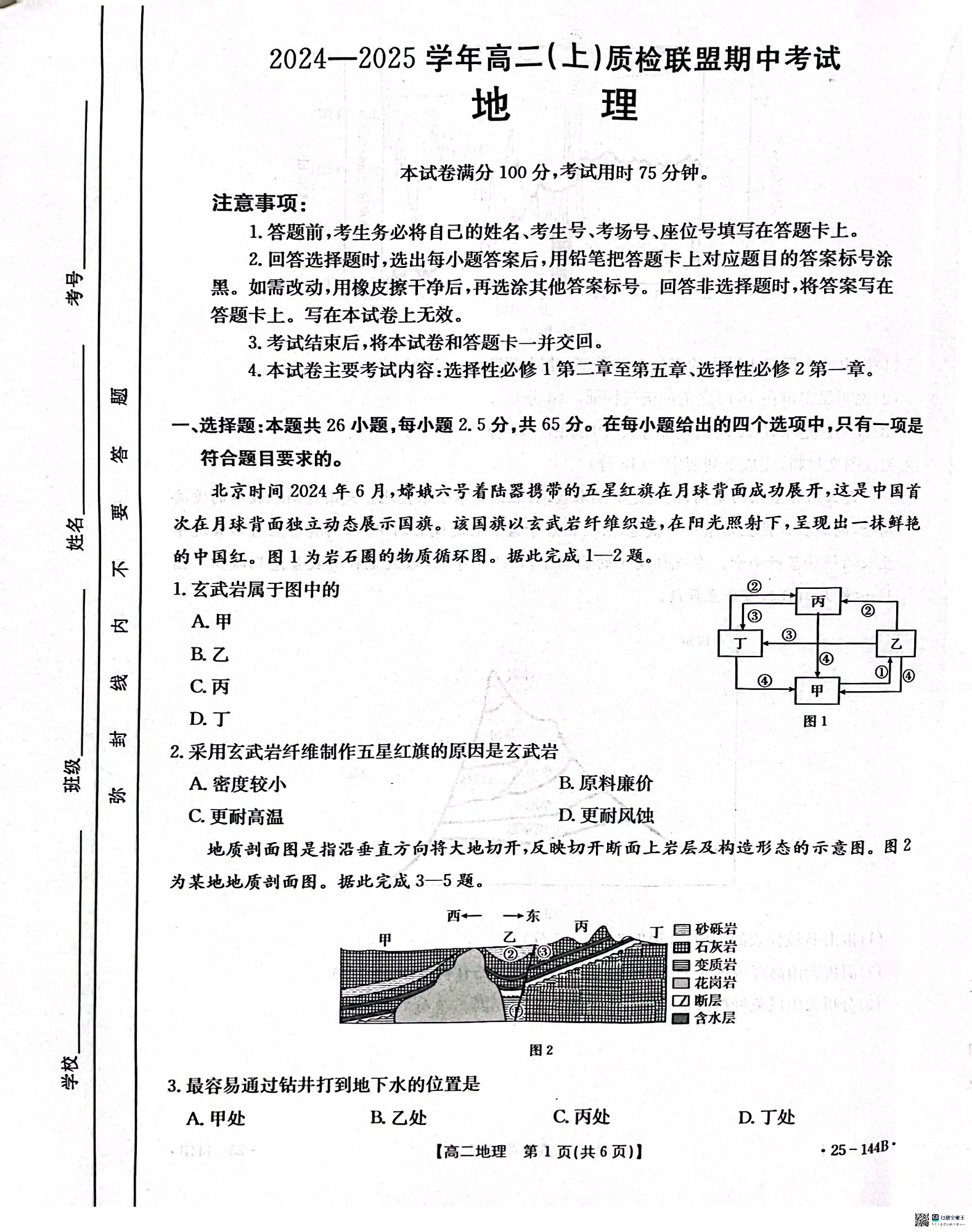河北省邢台市2024-2025学年高二(上)质检联盟期中考试地理