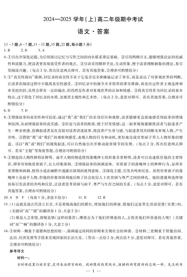 河南省2024-2025学年(上)高二年级期中考试语文答案