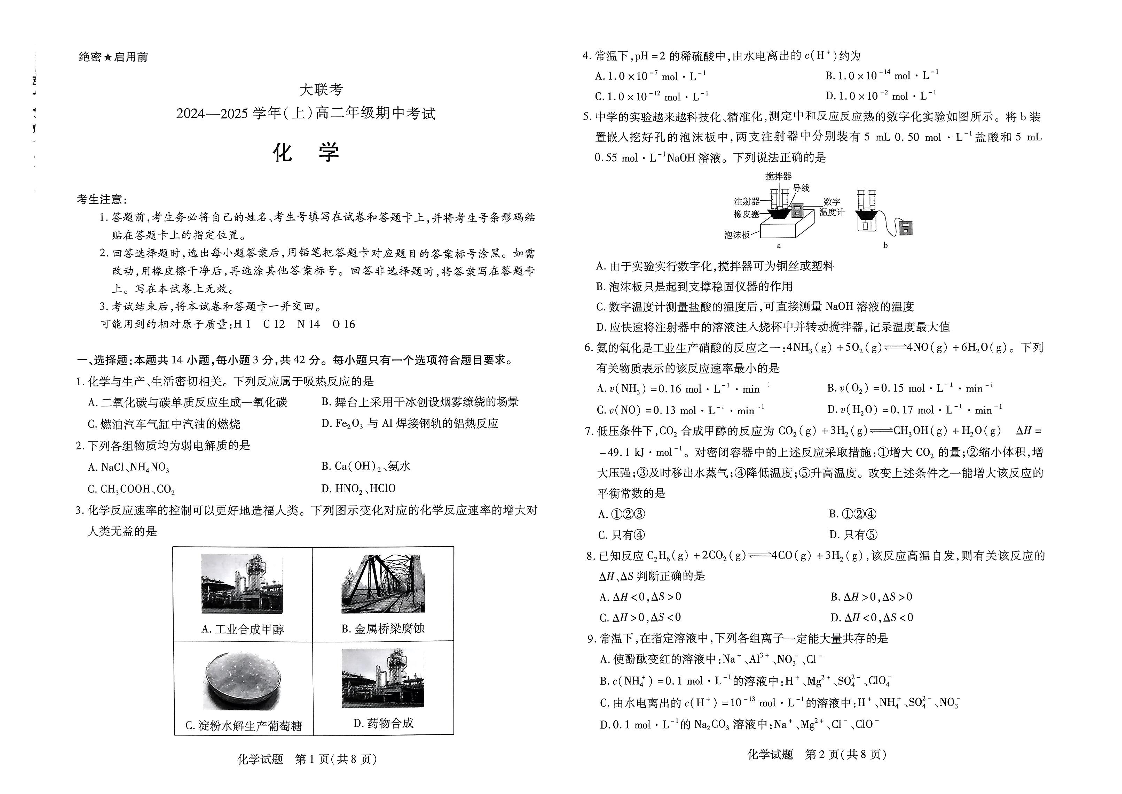 河南省2024-2025学年(上)高二年级期中考试化学