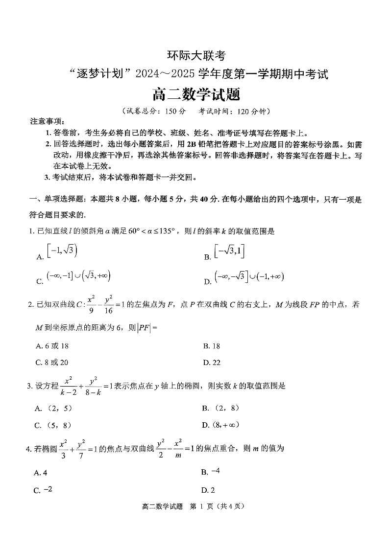 河南省驻马店市环际大联考“逐梦计划”2024-2025学年度第一学期期中考试数学试题