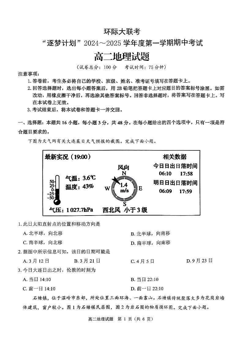 河南省驻马店市环际大联考“逐梦计划”2024-2025学年度第一学期期中考试地理试题