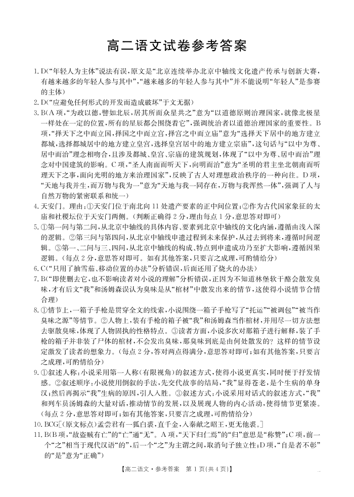 湖南省多校联考2024-2025学年高二上学期期中考试语文答案