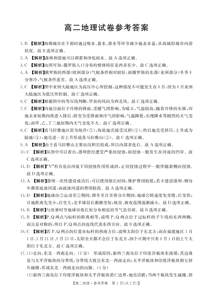 湖南省多校联考2024-2025学年高二上学期期中考试地理答案