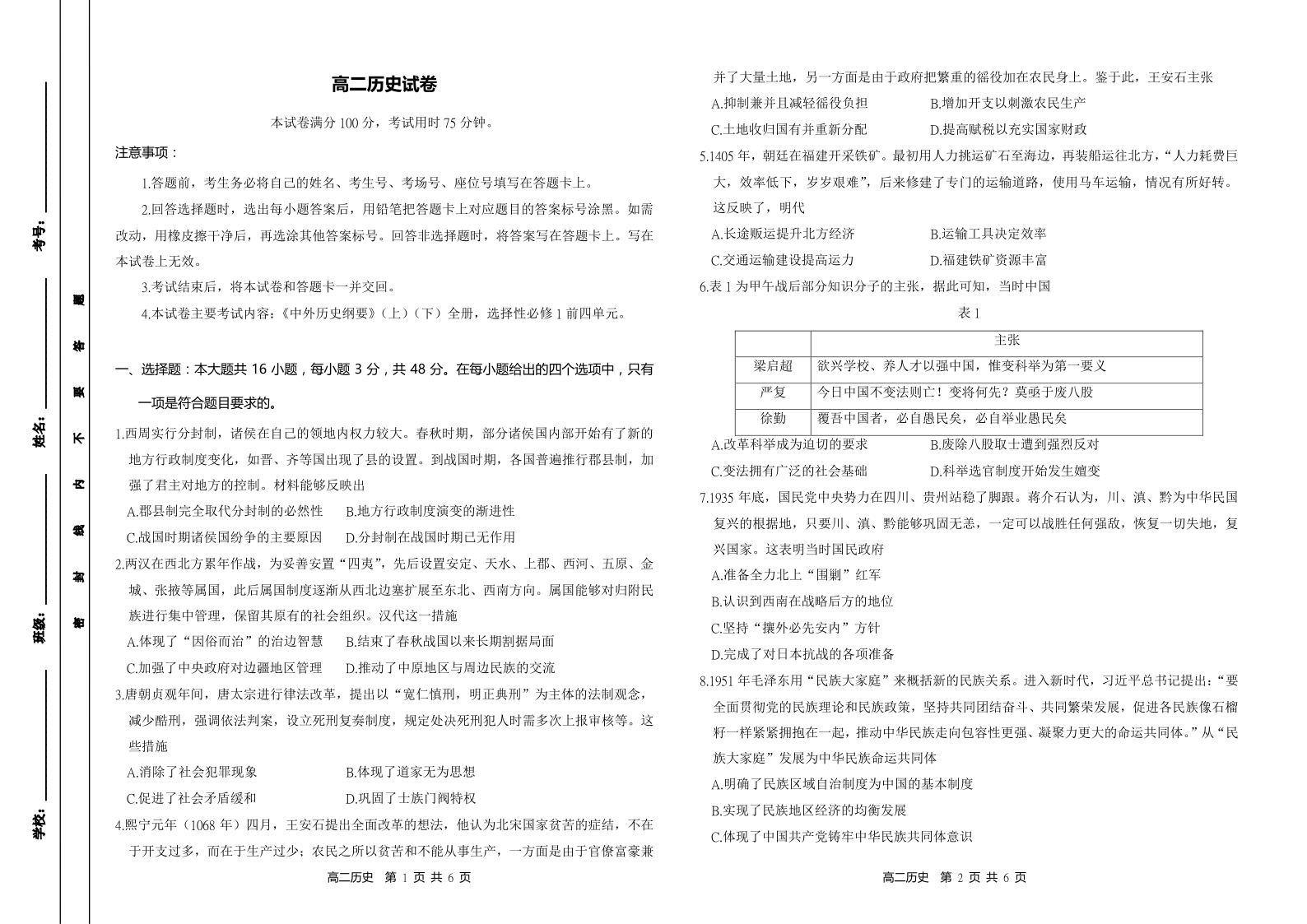 湖南省多校联考2024-2025学年高二上学期期中考试历史