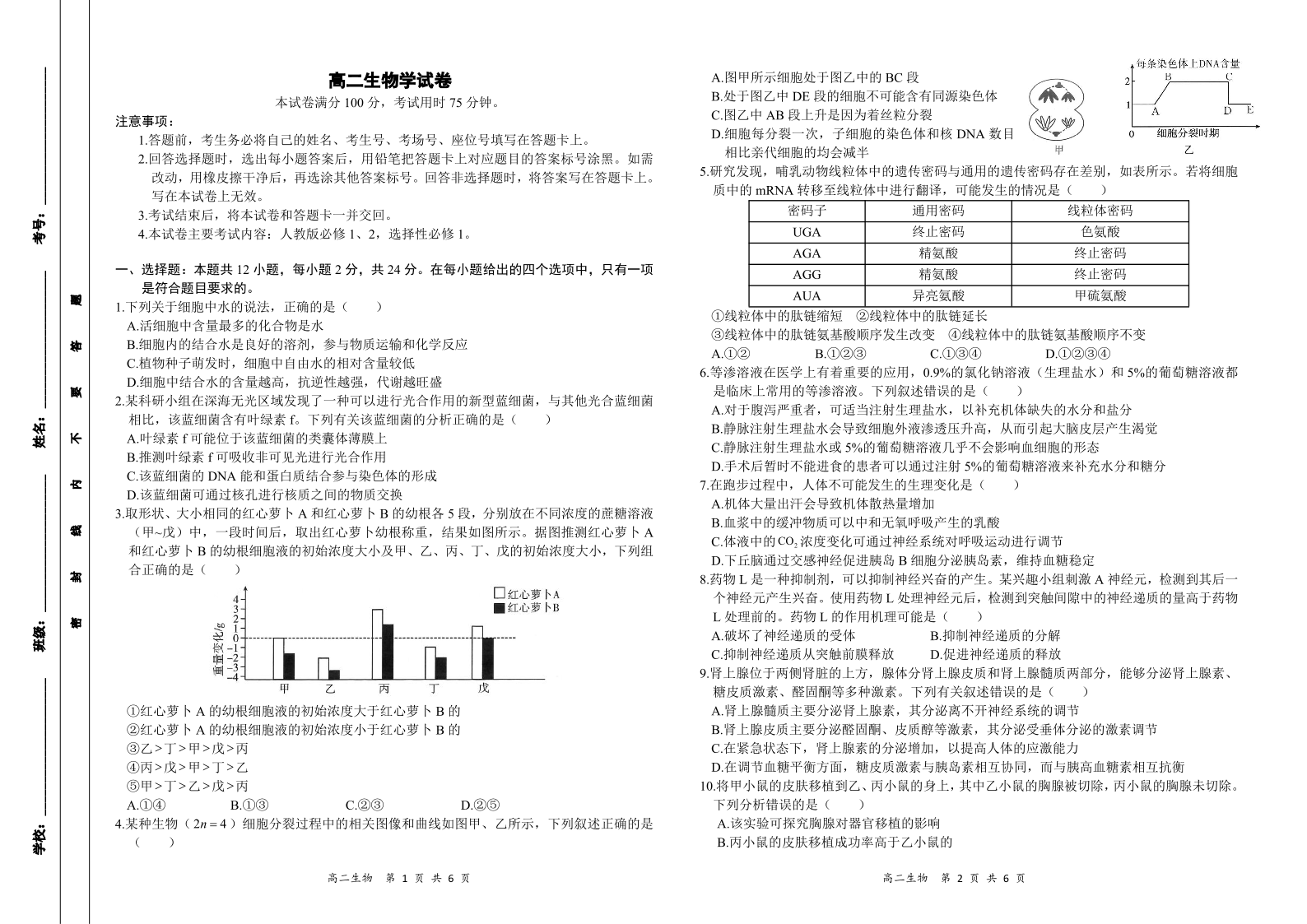 湖南省多校联考2024-2025学年高二上学期期中考试生物