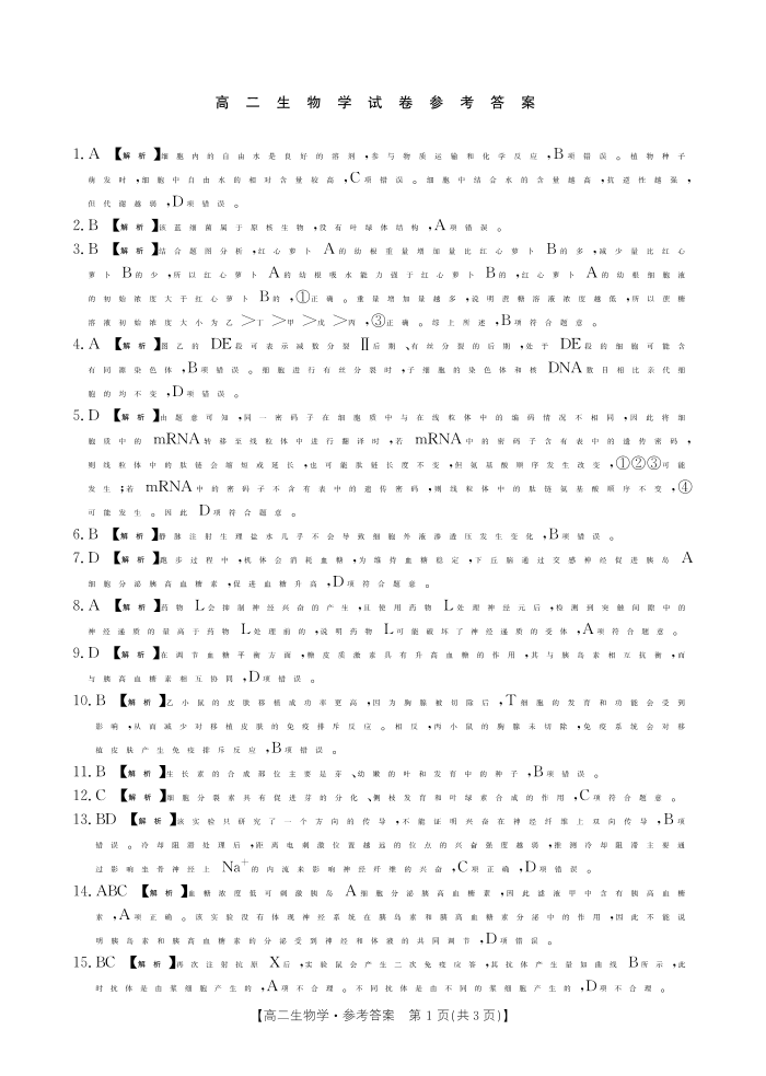 湖南省多校联考2024-2025学年高二上学期期中考试生物答案