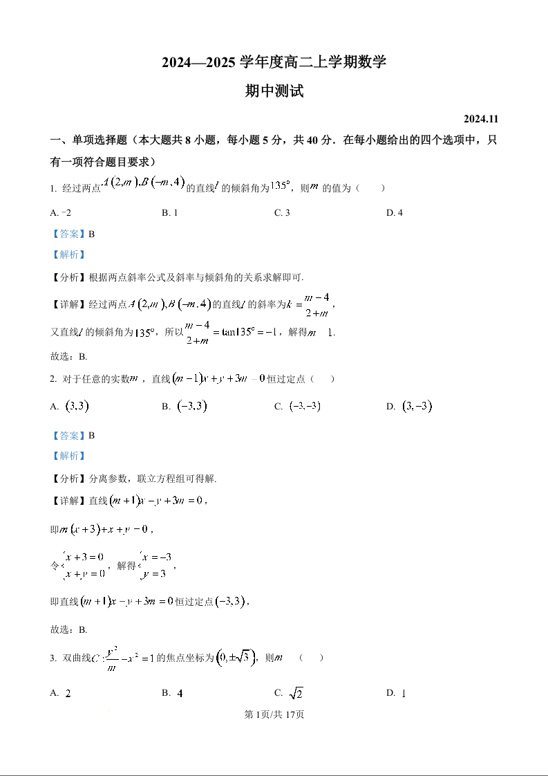 江苏省扬州市江都区2024-2025学年度第一学期期中试卷数学试题(解析版)