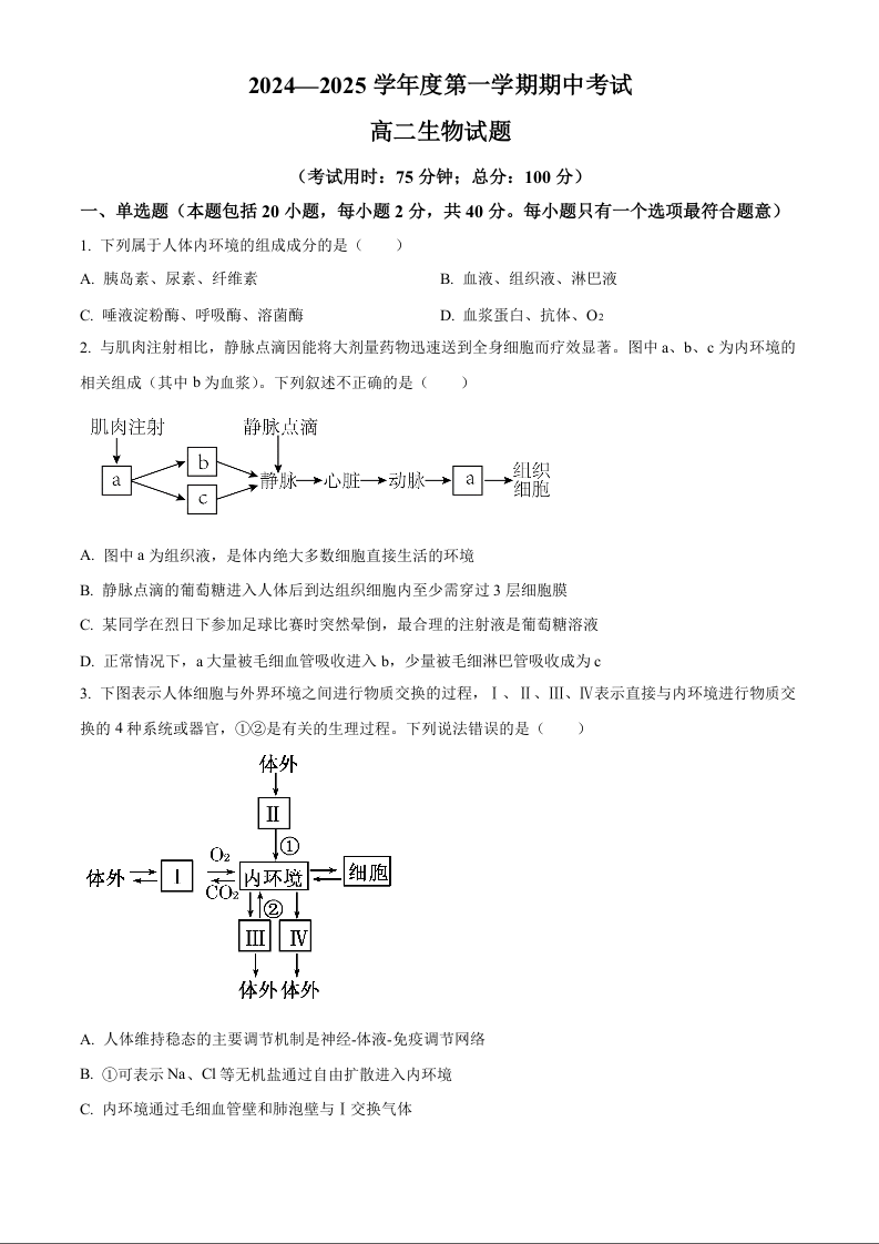 江苏省镇江市三校、泰州市部分学校2024-2025学年度第一学期期中考试生物+答案