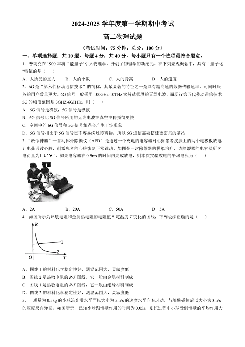 江苏省镇江市三校、泰州市部分学校2024-2025学年度第一学期期中考试物理+答案