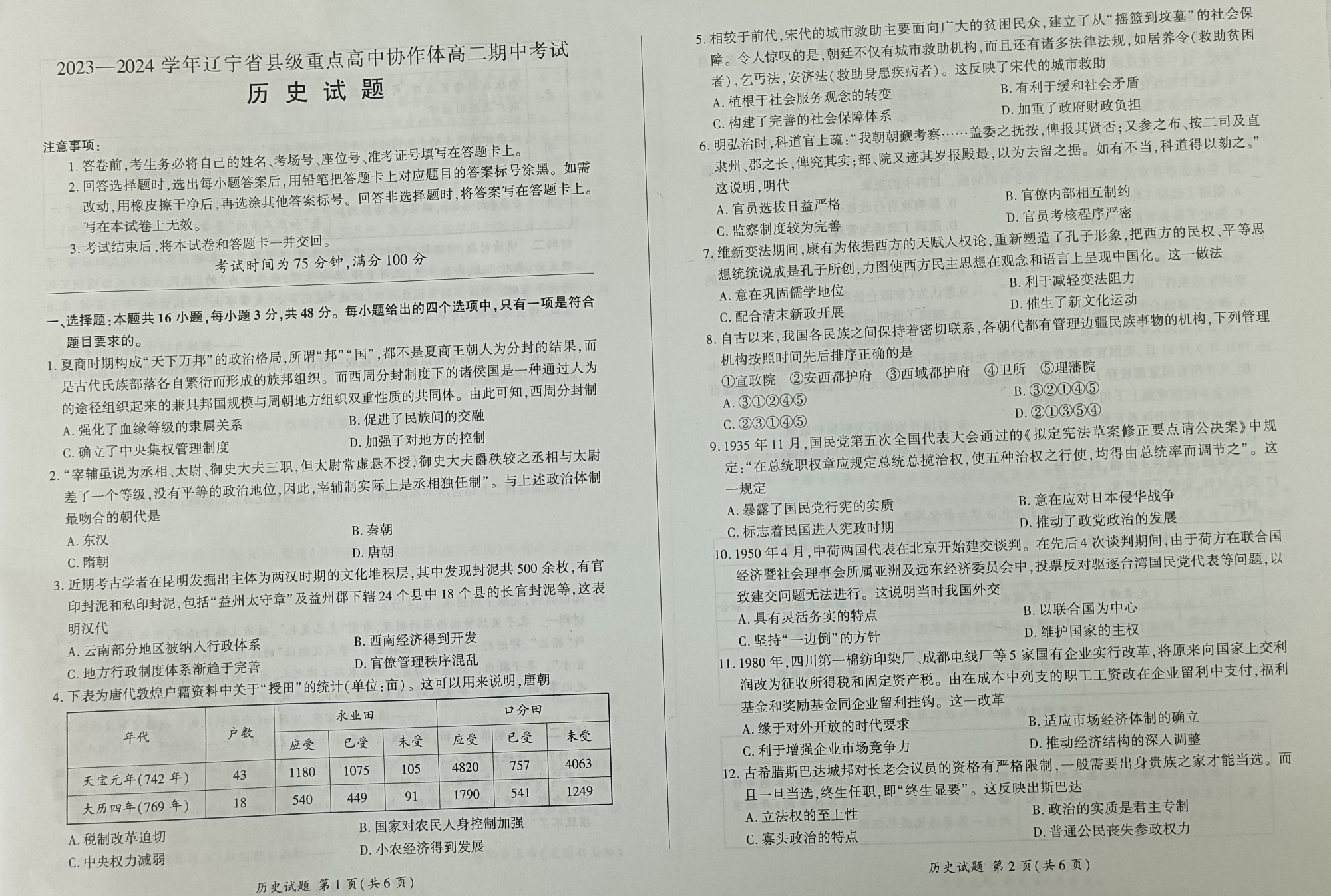 辽宁省县级重点高中协作体2023-2024学年高二上学期期中考试历史